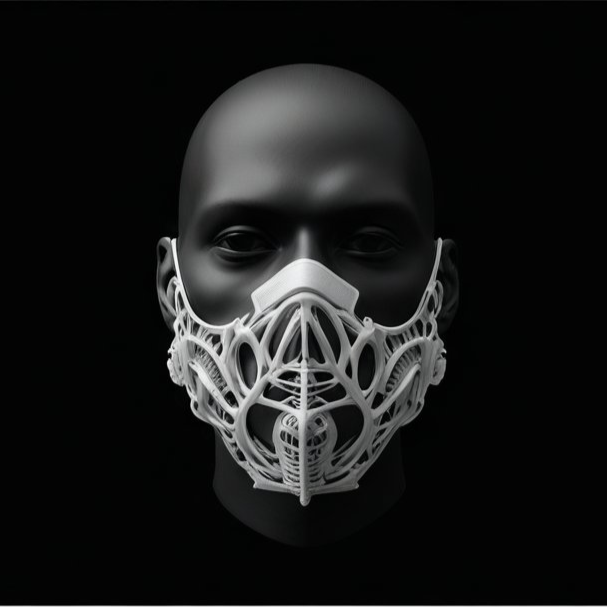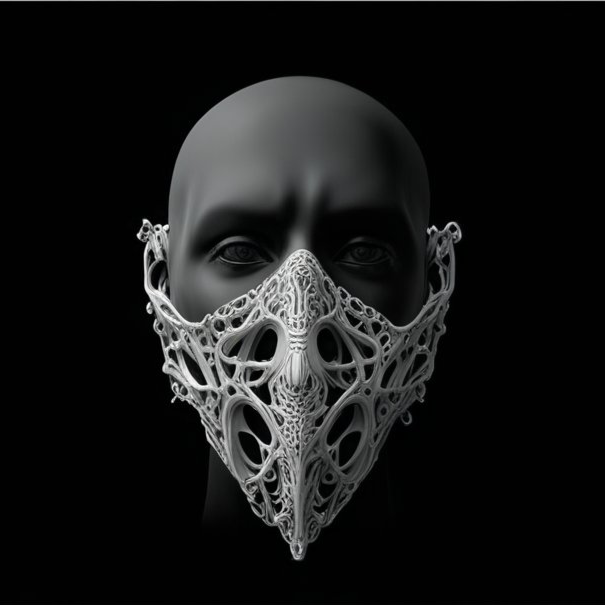 When the COVID-19 pandemic began, the necessity to stay home and wear face masks, coupled with the struggle of feeling confined and lacking visual inspiration, drove me to explore new design possibilities. In my studio, using computational design techniques and a 3D printer, I reimagined the face mask as both a functional and artistic object. This project allowed me to transform the constraints of isolation into a creative opportunity, blending practicality with aesthetic innovation.
