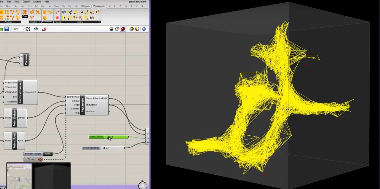 The design process for this project starts with using an agent-based model that can morph and grow and adapt to changing parameters. For this purpose every cell is considered as the single particle of the virtual material. Particles in this system have defined characteristics and material properties, they sense their environment, self-organize and aggregate to form a cohesive body.